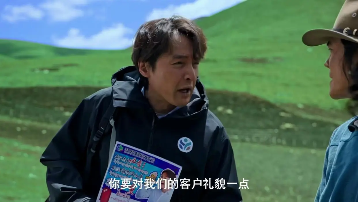 被牦牛顶飞时的狼狈、踩牛粪时的无奈、找牛时的焦急,每一个表情都充满喜感,毫无偶像包袱;而面对群狼时的决绝、成功推广保险后的释然、与藏民相处时的温柔,又展现出正剧的张力。