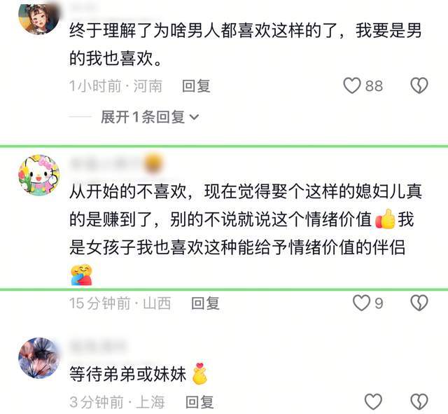 不过对于男性来说,“爱情的结晶”往往是最重要的,这也许就是男女之间的差别,不过由此也不难看出,李谣的情商很高,她知道自己需要什么,也知道自己当下的幸福源于什么,所以她的情绪价值给的非常到位。